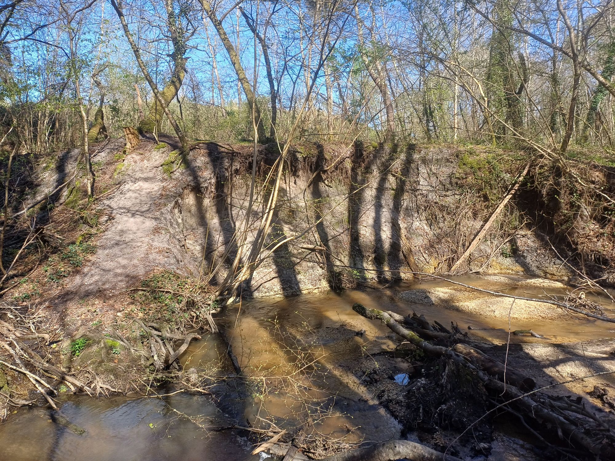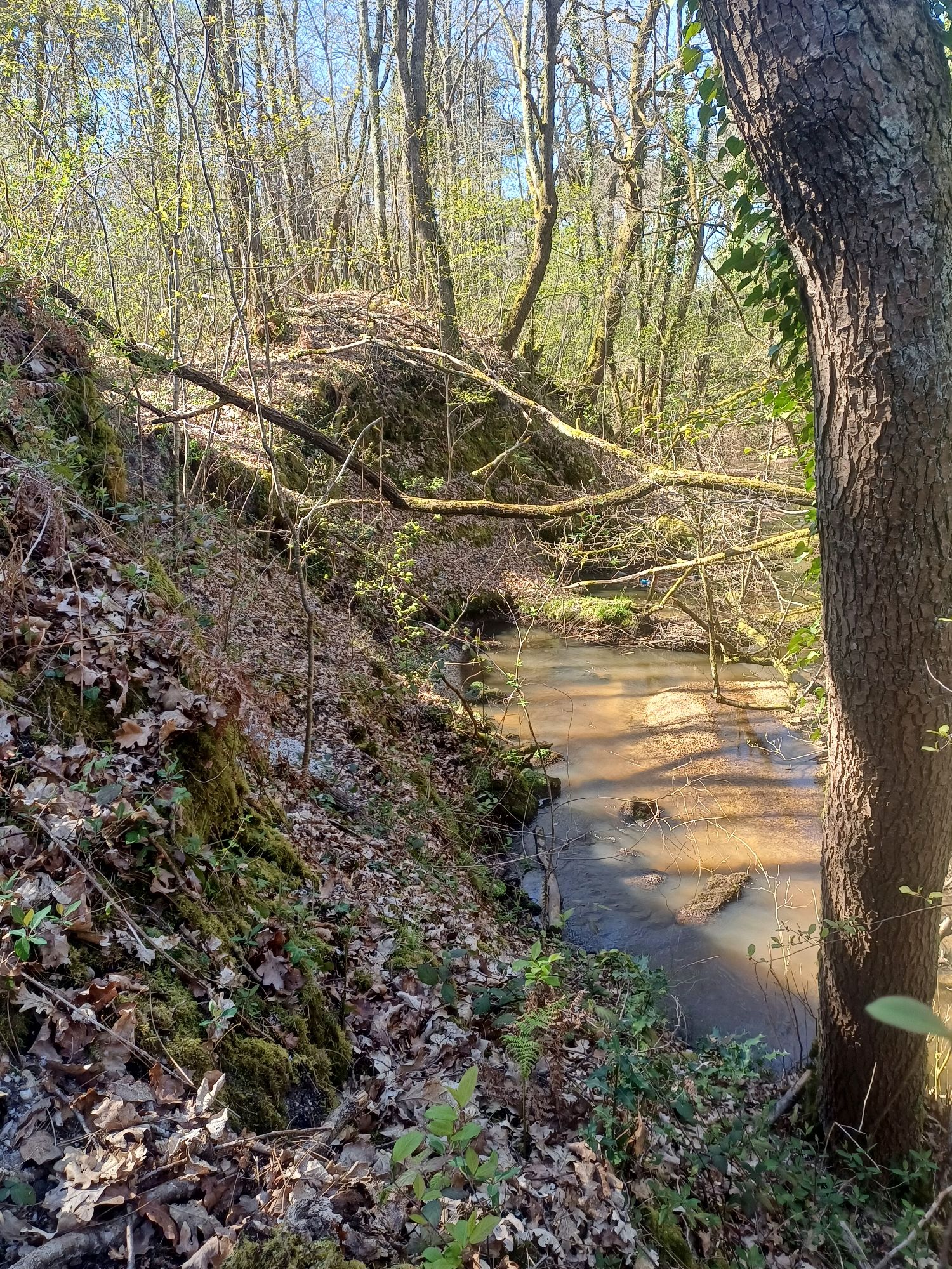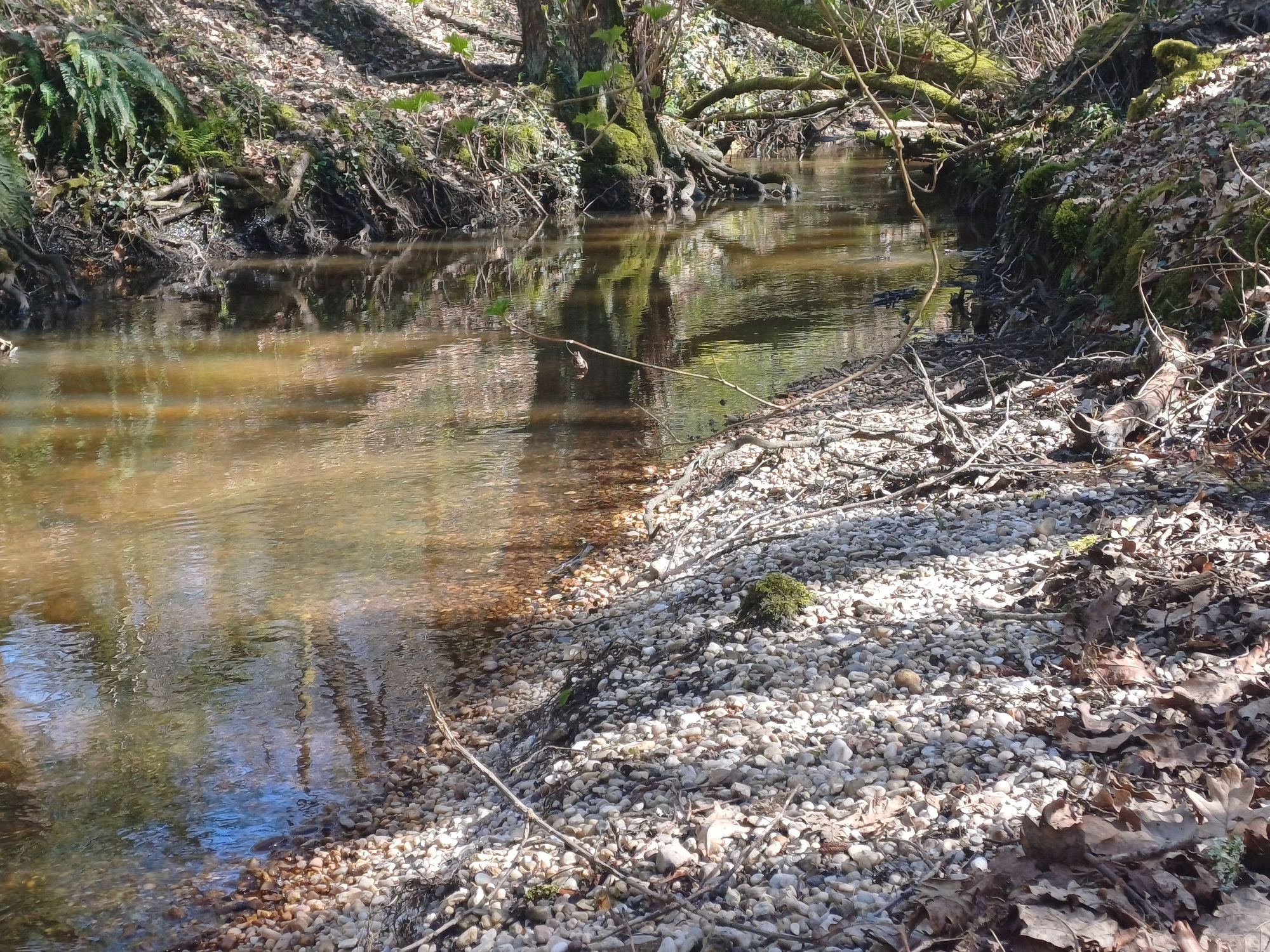 Vue sur le ruisseau EscarpementDétails sur la rocheGravier abondantPlage de gravier blancConglomérat de gravierAnémone Primevères Ruisseau Ruisseau Un peu de vitesseCheminDétail geologique Début de l’encaissement du ruisseau Zone marécageuse en bordure de ruisseau Sol detritique SableReflet ferreuxVégétation Grès FerRuisseau BergeRuisseau encaissé Ruisseau