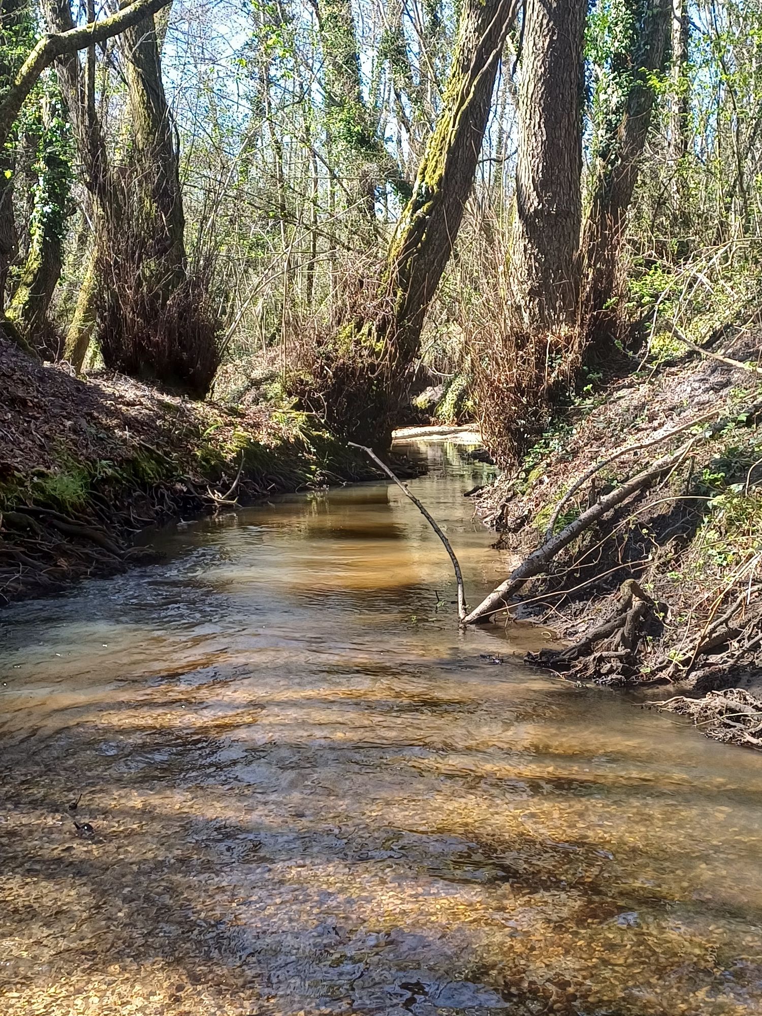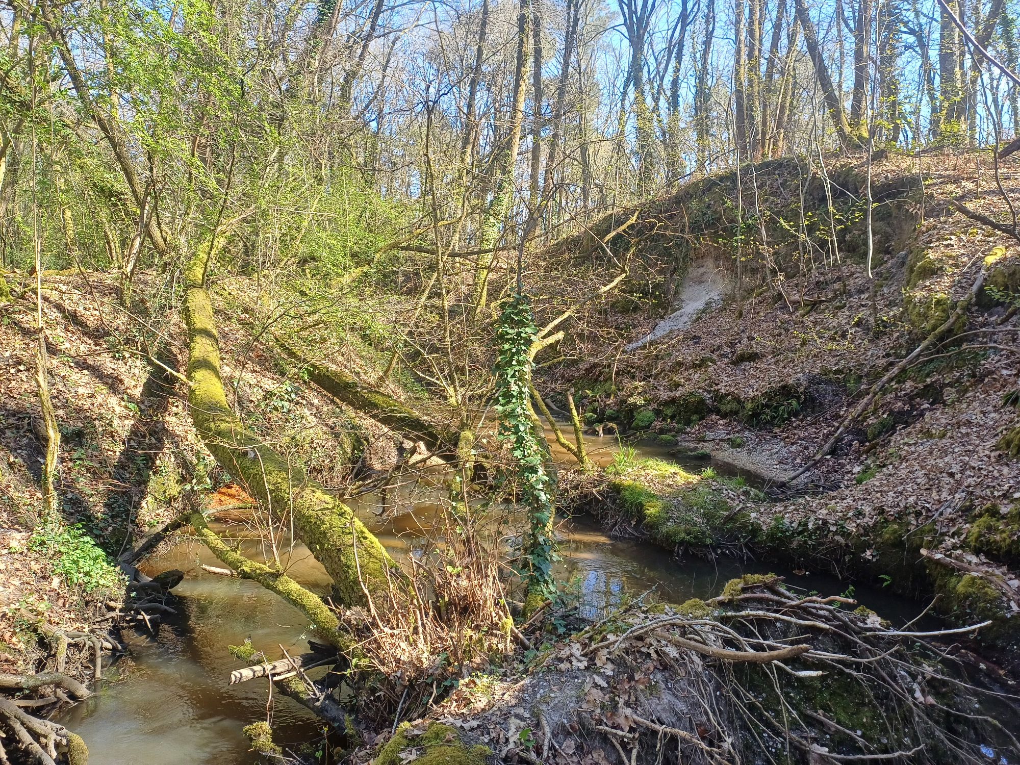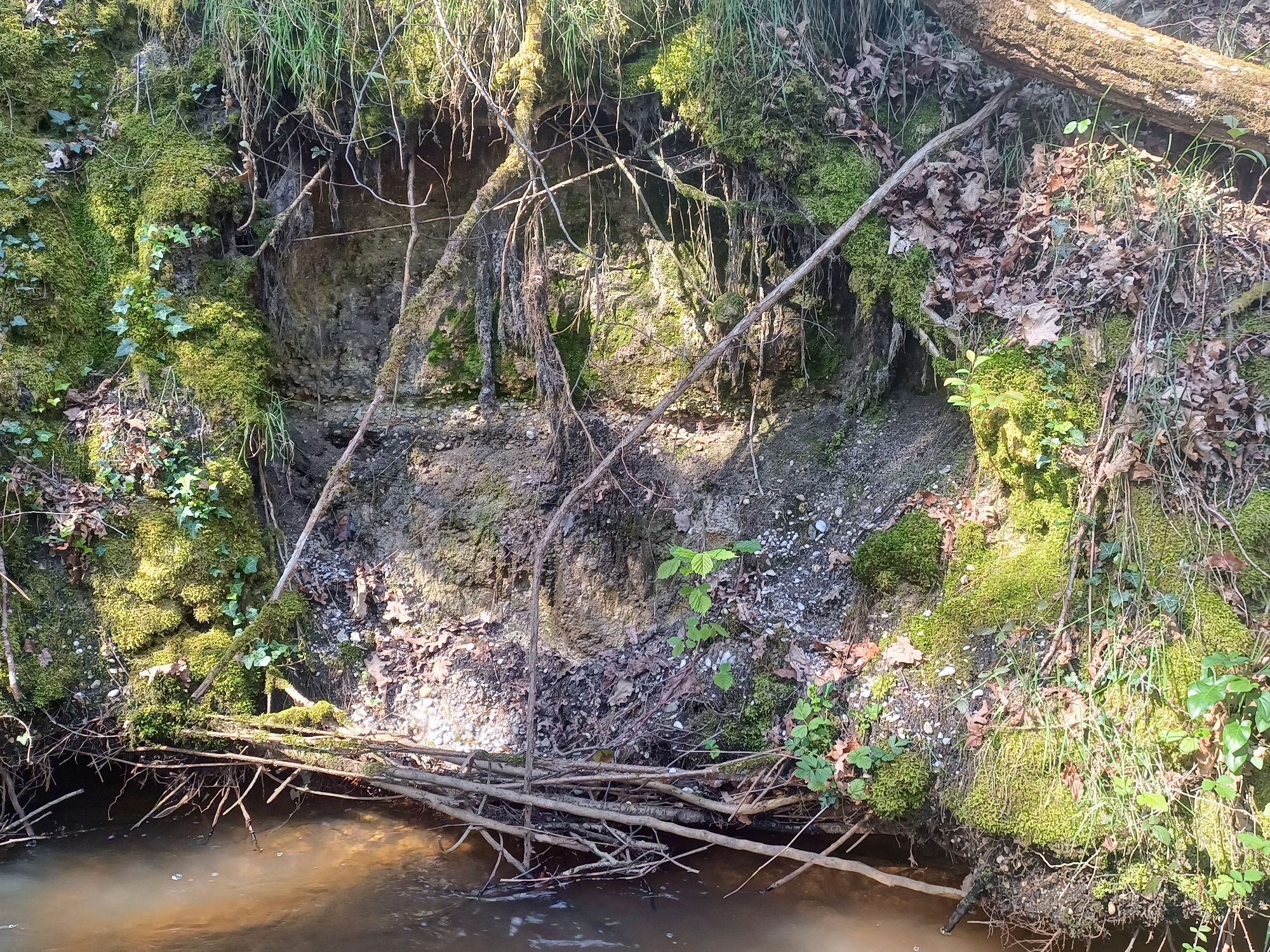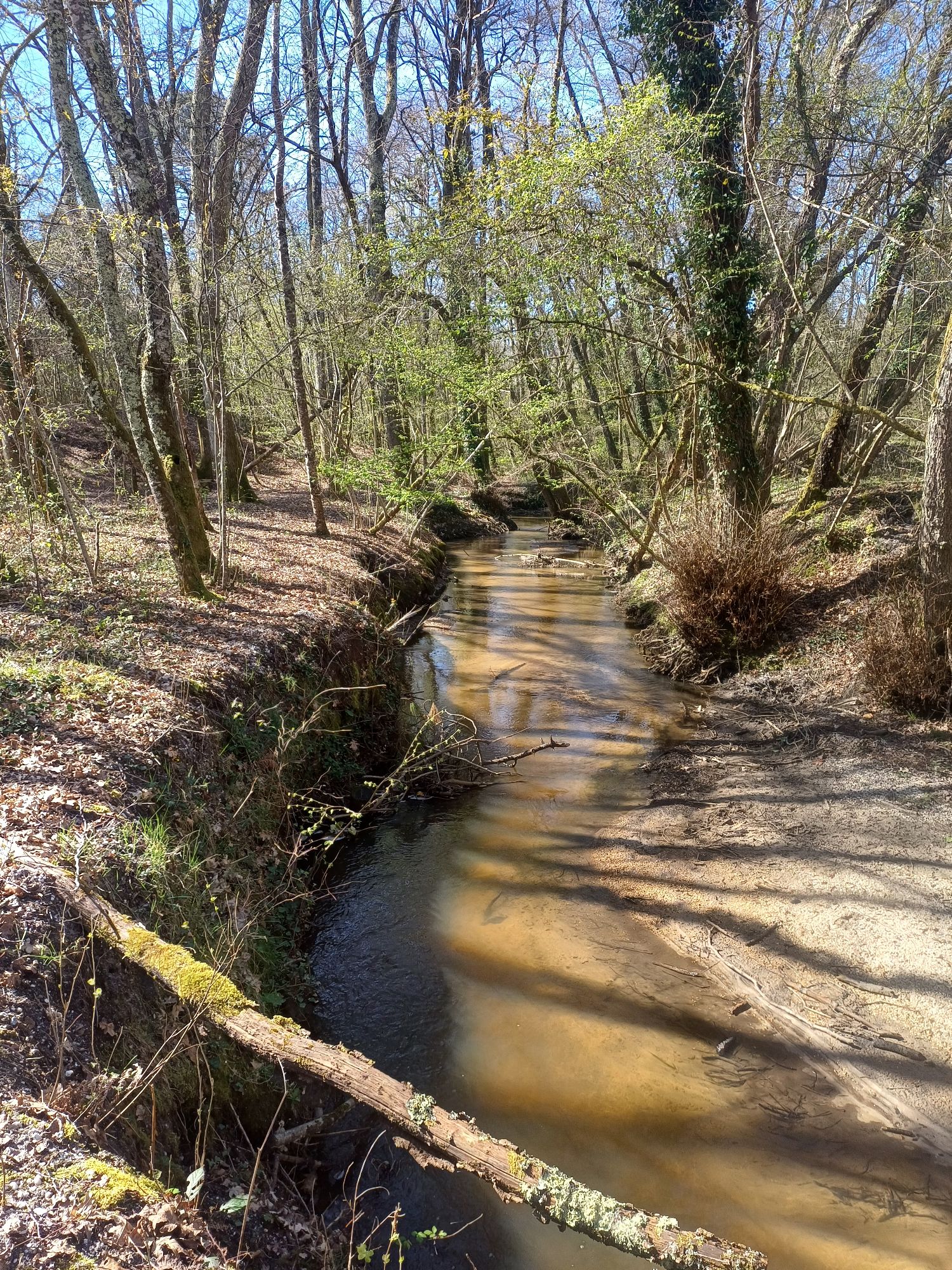 Vue sur le ruisseau EscarpementDétails sur la rocheGravier abondantPlage de gravier blancConglomérat de gravierAnémone Primevères Ruisseau Ruisseau Un peu de vitesseCheminDétail geologique Début de l’encaissement du ruisseau Zone marécageuse en bordure de ruisseau Sol detritique SableReflet ferreuxVégétation Grès FerRuisseau BergeRuisseau encaissé Ruisseau